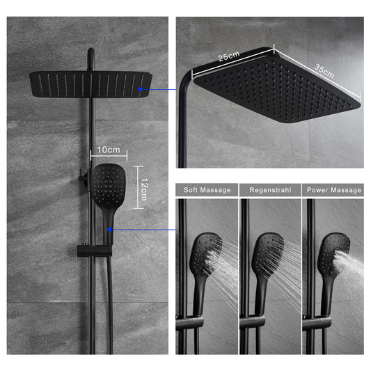 JOHO Duschset mit Überkopfbrause und eckige Kopfbrause Matt Schwarz
