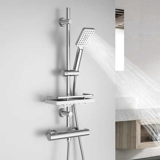 JOHO Duschset Rail Shower kit Rund Handbrause Duschstangeset mit Ablage Chrom