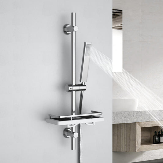 JOHO Duschset Duschstangeset mit Ablage, Rail Shower kit mit rechteckig Handbrause Chrom (DS1210CP)