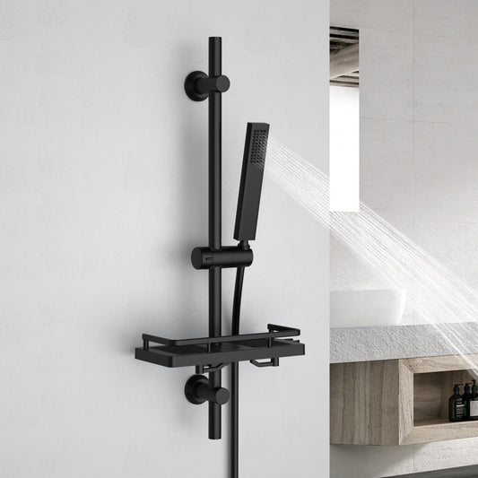 JOHO Duschset Rail Shower kit Der Duschkopf mit hohem Preis-Leistungs-Verhältnis Handbrause Duschstangeset mit Ablage schwarz (DS1210MB)