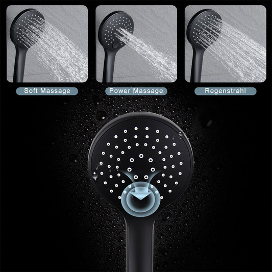 JOHO Runde Duschkopf mit Schlauch,3 Strahlarten Handbrause Duschbrause mit Brauseschlauch 150cm Schwarz