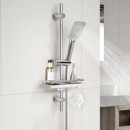 JOHO Duschset Edelstahl Duschstange mit Duschkopfhalterung und Duschablage Chrom JYCP-A