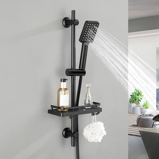 JOHO Duschset Edelstahl Brausestange mit Duschkopfhalterung und Duschablage Schwarz JYMB-A