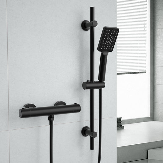 JOHO Thermostat Duscharmatur mit 38 °C Sicherheitstaste, Mischbatterie Dusche Thermostat, Schwarz Badewannenarmatur für Dusche und Badewanne