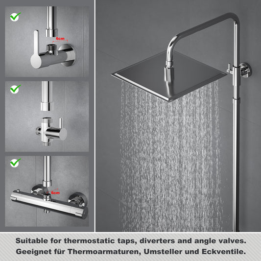 JOHO Edelstahl Duschstange mit Handbrausehalter und Gewindeadapter, Variable Wandbefestigungen Wandstange Duschrohr für Regendusche Brausearm Chrom