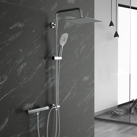 JOHO Thermostatbatterie Duscharmatur mit Thermostat, Dusche Thermostatarmatur Mischbatterie mit 38 °C Sicherheitstaste, Duscharmatur Chrom Rund