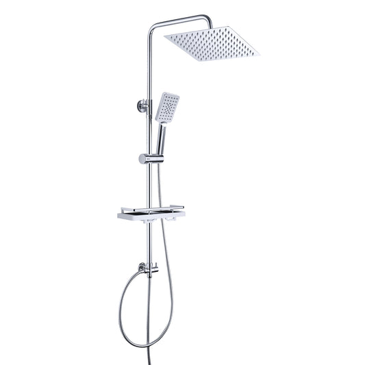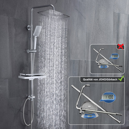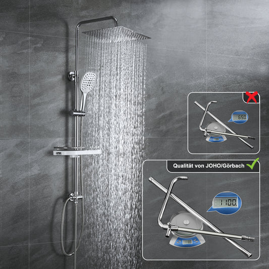 JOHO Edelstahl Duschsystem Regenduschset mit eckig Kopfbrause und Ablage Chrom