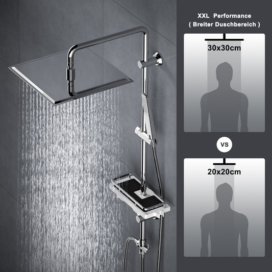 JOHO 304 Edelstahl Duschset mit 30x30cm Kopfbrause und Eckstange Chrom