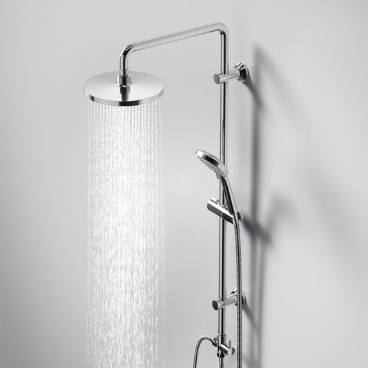JOHO Regendusche Duschsystem mit Rund Kopfbrause und U Duschstange 92cm Chrom
