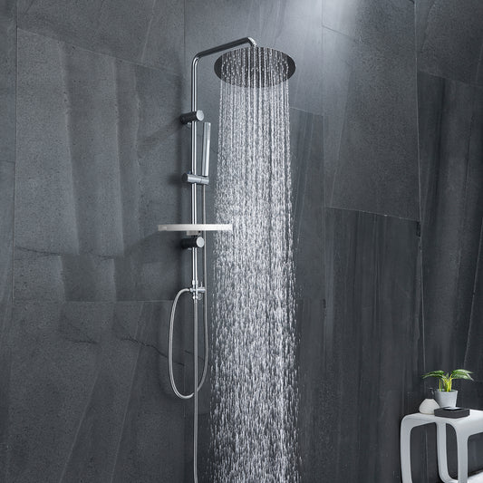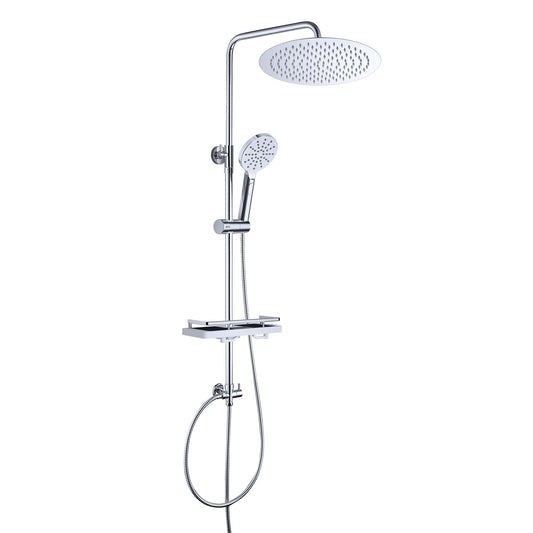 JOHO Edelstahl Regendusche Duschset mit rund Kopfbrause und Ablage Chrom