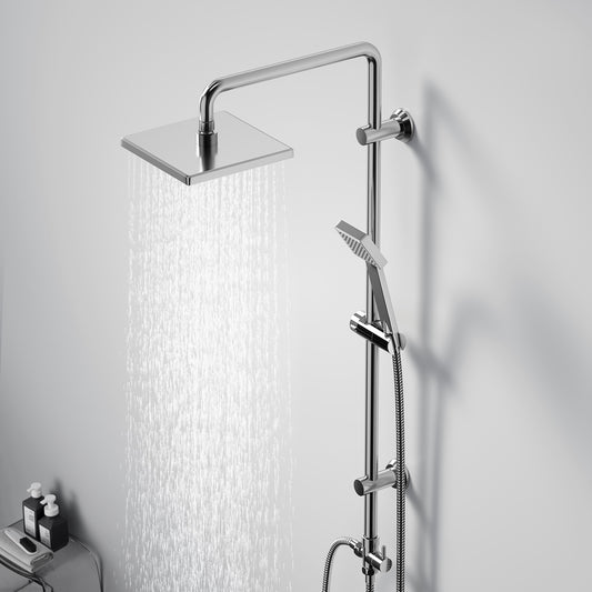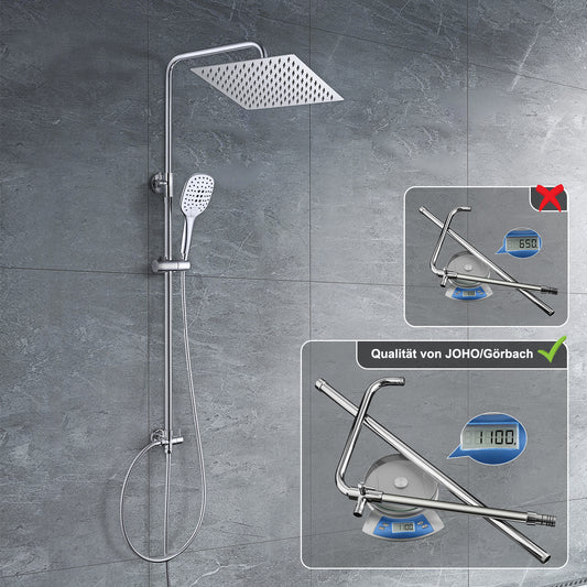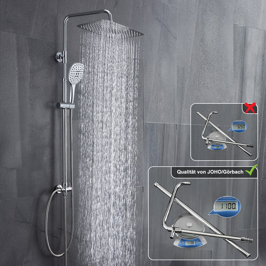 JOHO Edelstahl Duschsystem mit rechteckig Kopfbrause Chrom