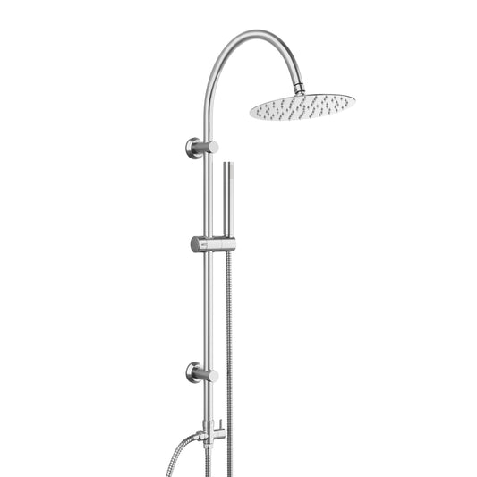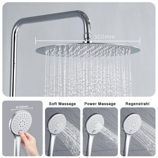 JOHO 304 Edelstahl Duscharmatur mit Multifunktions Rund Kopfbrause und Handbrause Chrom