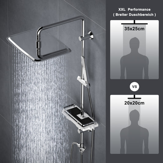 JOHO Regendusche Duschsystem 92 CM mit Ablage Kopfbrause rechteckig 35x25 CM Chrom