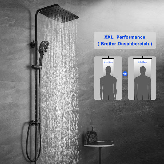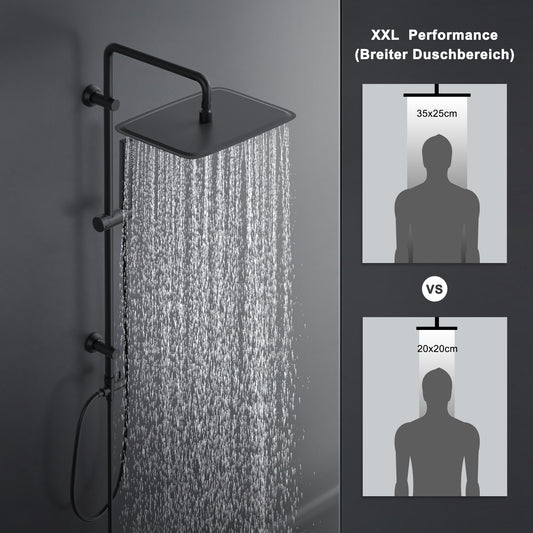 JOHO Regendusche Duschsystem ohne Armatur, Edelstahl Duschset mit 92cm Duschstange, XXL Überkopfbrause Rechteckig 35 * 25cm Schwarz