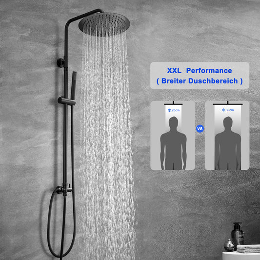 JOHO Edelstahl Duschsystem mit Thermostatarmatur, Regendusche Duschset mit Mischbatterie Duscharmatur, Duschstange, Kopfbrause 30 * 30cm, Schwarz