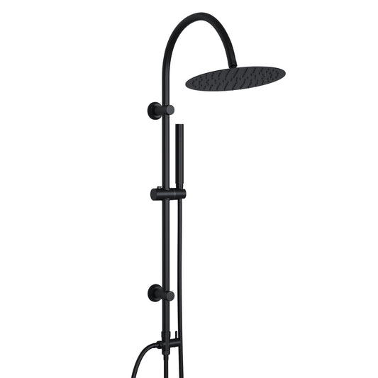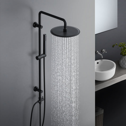 JOHO Duschset mit Rund Kopfbrause und Single-Funktion Handbrause Matt Schwarz