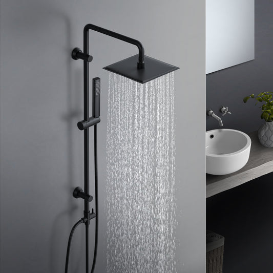 JOHO Duschset Überkopfbrauseset mit eckig Kopfbrause Matt Schwarz