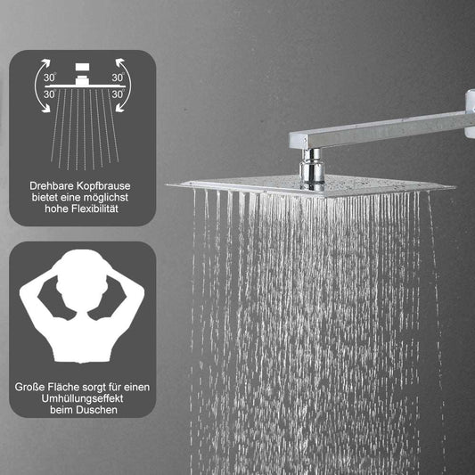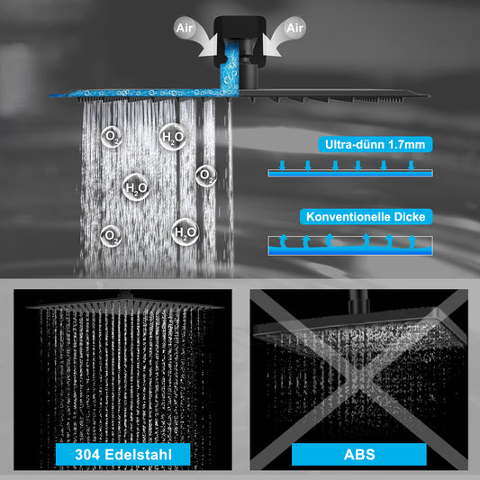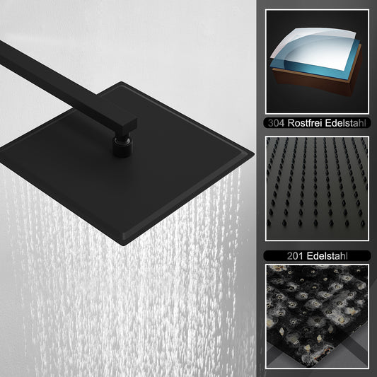 JOHO Edelstahl Kopfbrause Regendusche Duschkopf Eckigen Einbauduschkopf Mit Anti-Kalk Düsen Schwarz