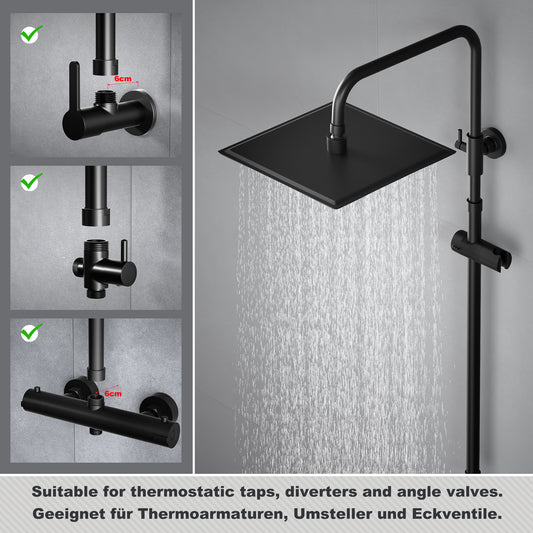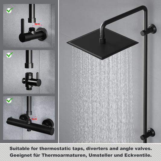 JOHO Edelstahl Duschstange mit Gewindeadapter, Variable Wandbefestigungen Wandstange Regendusche Duschrohr Brausearm Brausestange Duschsäule Schwarz