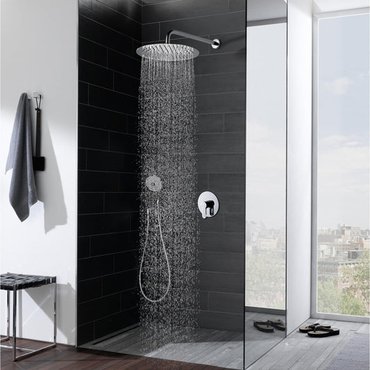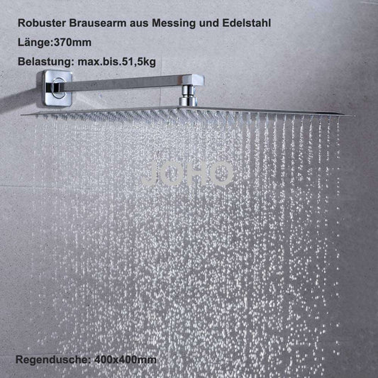JOHO Regendusche 40cm Rund Duschkopf mit Bombenfester Brausearm Wandarm 40cm, aus Edelstahl mit Anti-Kalk-Düsen
