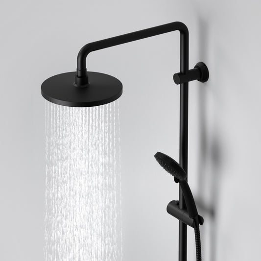 JOHO ABS Kopfbrause 8 Zoll Regendusche Duschkopf mit Handbrause, Runden Einbauduschkopf Mit Anti-Kalk Düsen D20cm Schwarz