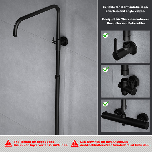 JOHO Höheverstellbare Duschstange aus Edelstahl Duschsäule Wandstange Regendusche Brausearm mit verstellbare Länge von 69 bis 111cm Schwarz