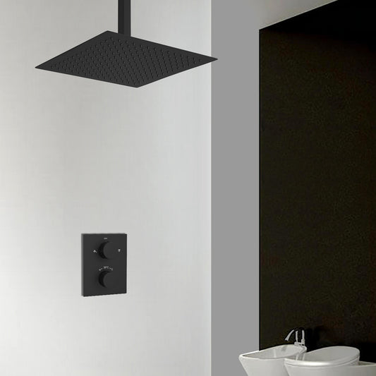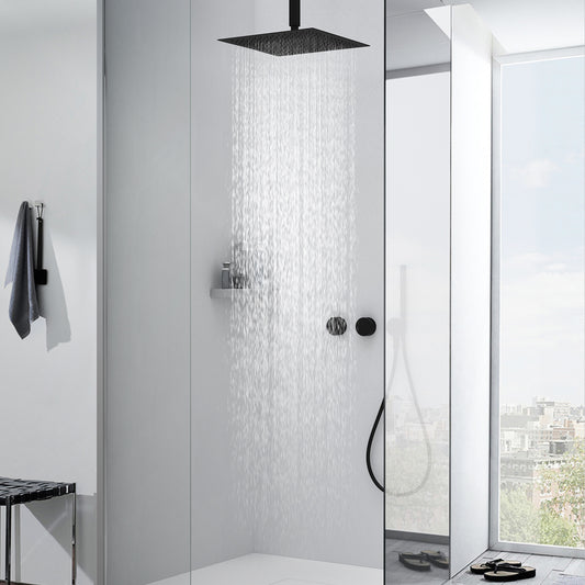 JOHO 30cm Regendusche Duschkopf Regenbrause Einbauduschköpfe aus 304 Edelstahl mit Bombenfester Brausearm zum Deckenanschluss 15cm Schwarz(30x30cm/15cm)