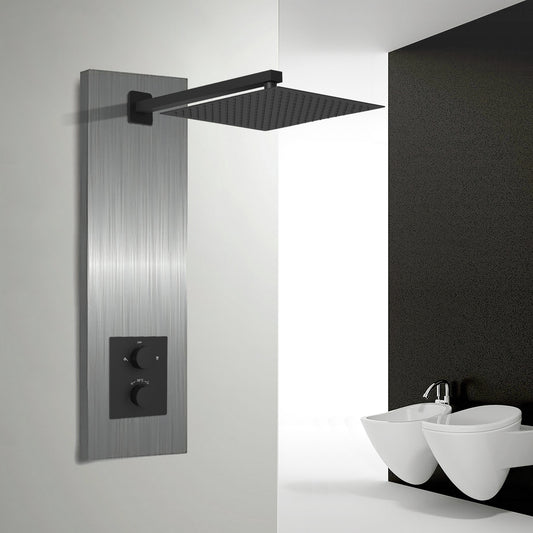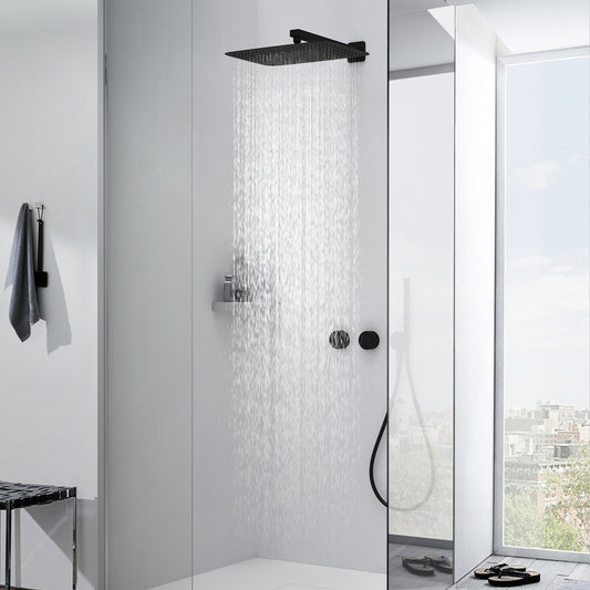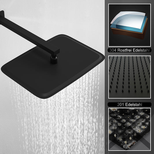 JOHO Edelstahl Kopfbrause Regendusche Duschkopf Rechteckig Einbauduschkopf Mit Anti-Kalk Düsen Schwarz