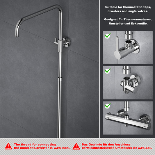 JOHO Höheverstellbare Duschstange aus Edelstahl Duschsäule Wandstange Regendusche Brausearm mit verstellbare Länge von 69 bis 111cm Chrom