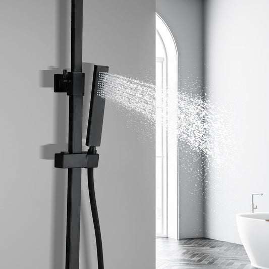 JOHO Stabhandbrause aus Edelstahl Eckig Duschkopf Wassersparend Duschbrause Brausekopf mit 1 Strahlarten Schwarz