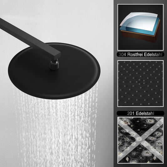 JOHO Edelstahl Kopfbrause Regendusche Duschkopf Runden Einbauduschkopf Mit Anti-Kalk Düsen Schwarz