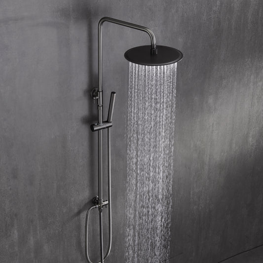 JOHO Edelstahl Duschset ohne Armatur, Regendusche Duschsystem mit Duschkopf, Duschstange, Duschschlauch, Rond Kopfbrause Gunmetal Grau