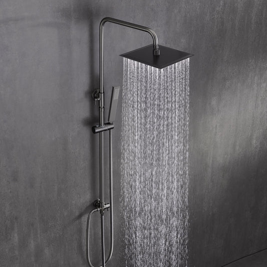 JOHO Edelstahl Duschset ohne Armatur, Regendusche Duschsystem mit Duschkopf, Duschstange, Duschschlauch, Eckig Kopfbrause Gunmetal Grau