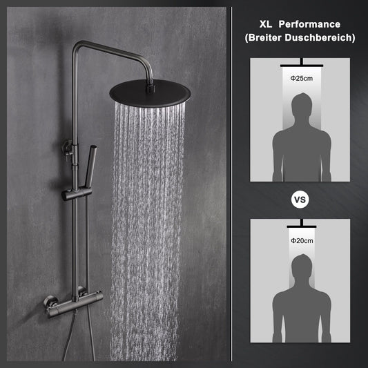 JOHO Regendusche Duschsystem mit Thermostatbatterie, Edelstahl Duschset mit Duscharmatur Komplettset, Kopfbrause Gunmetal Grau