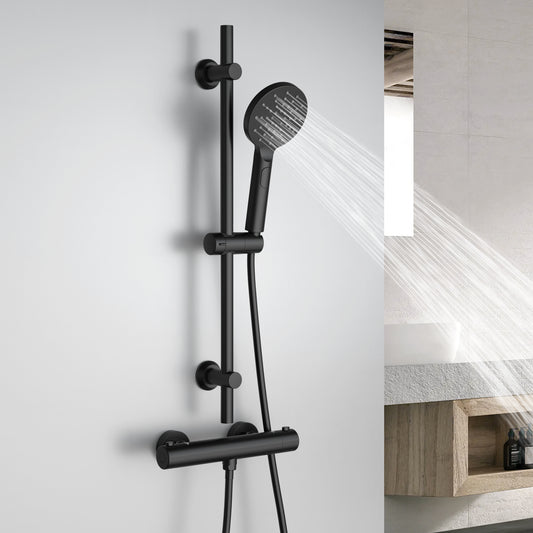 JOHO Schwarz Duschset mit Handbrause 0.7m Duschstange mit Brausehalterung Schlauch (DSD12MB)