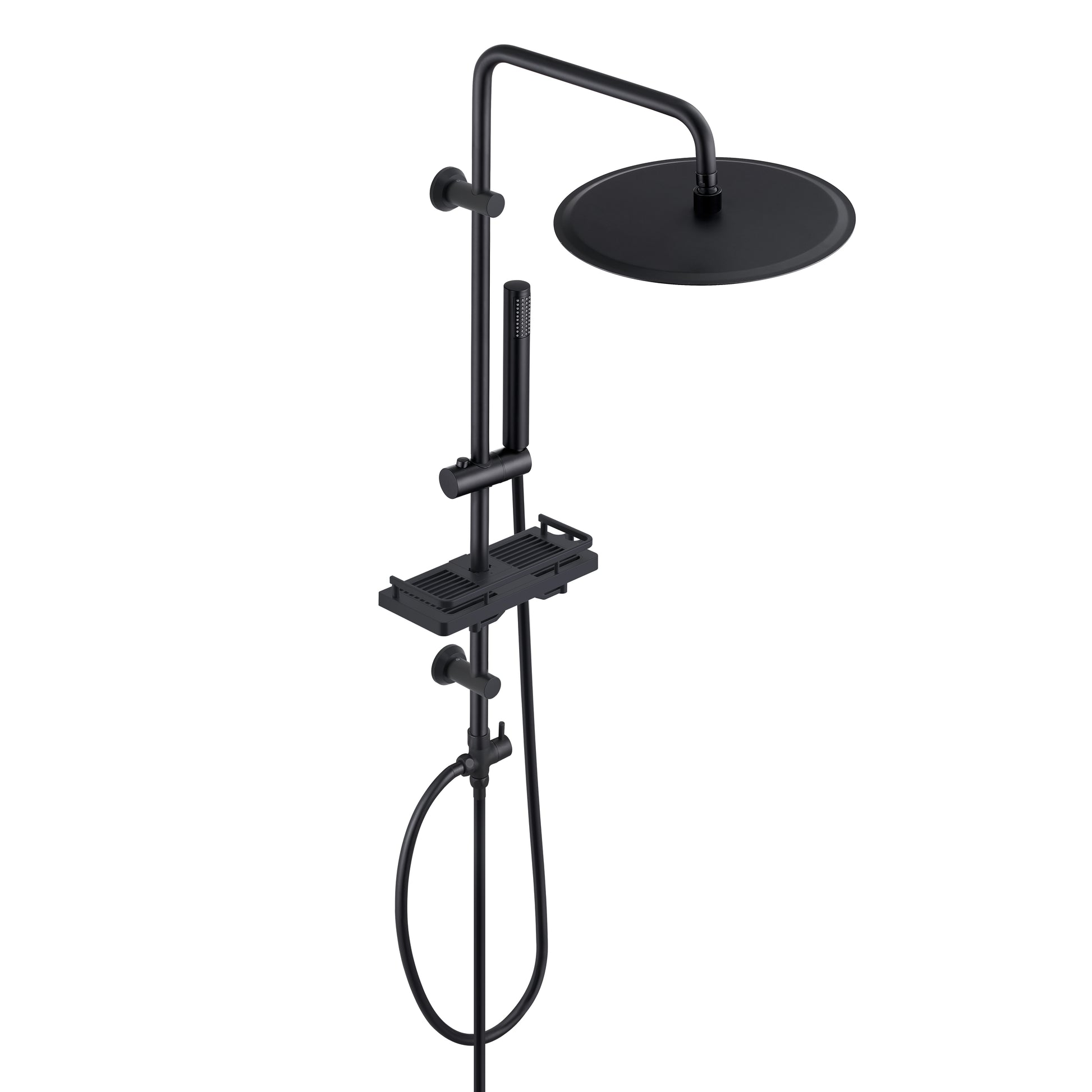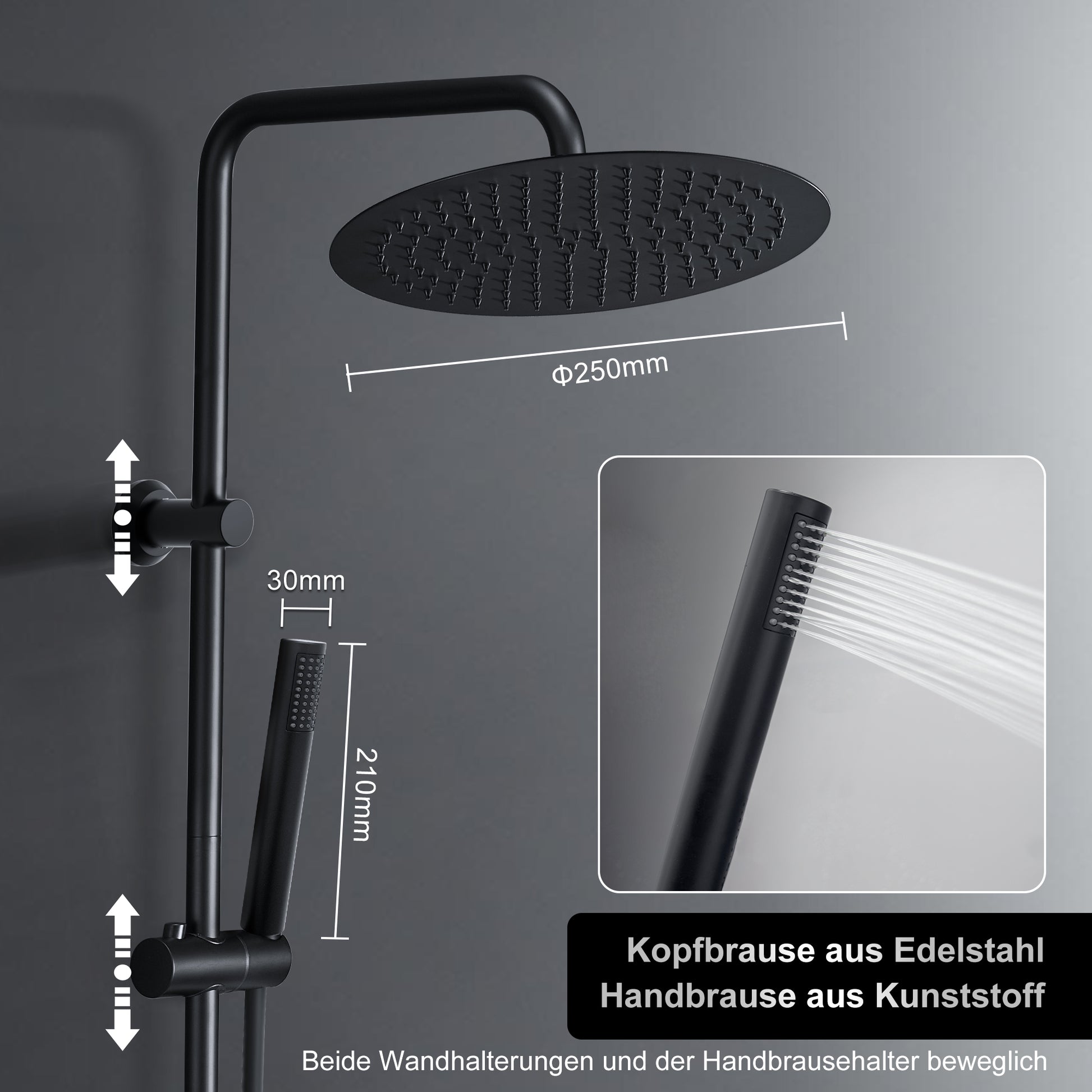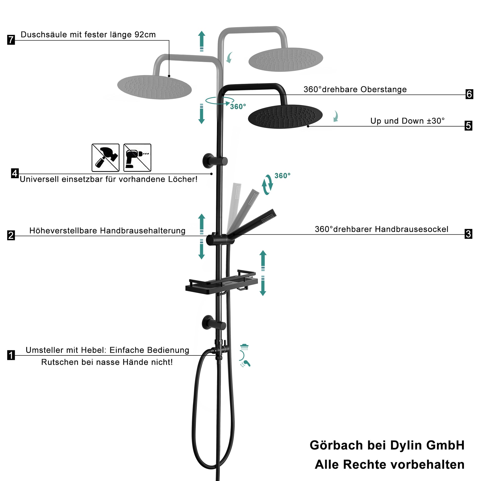 JOHO Regendusche Duschsystem 92 CM mit Ablage Kopfbrause Rund Schwarz