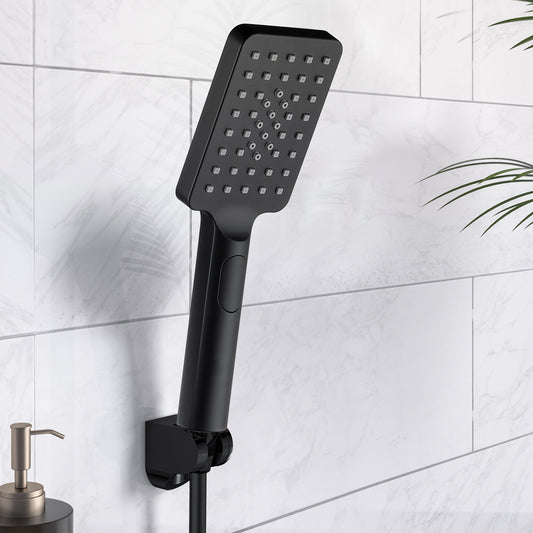 JOHO Duschkopf Handbrause mit 3 Strahlarten, Quadratisch Duschbrause aus ABS, Brausekopf mit Antikalk-Funktion Schwarz