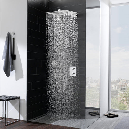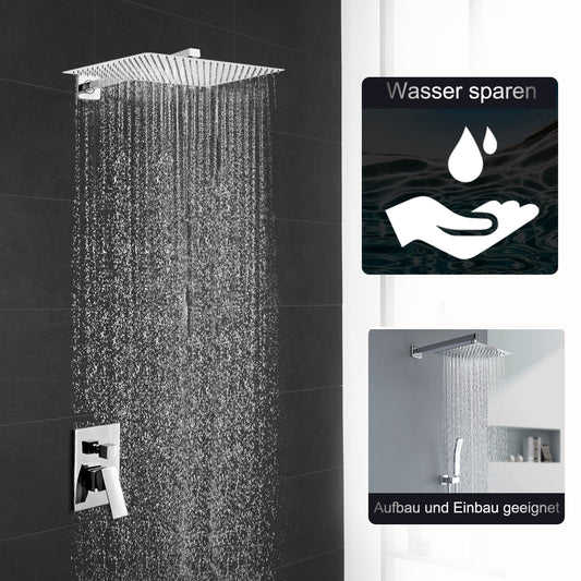 JOHO Regendusche Duschkopf groß Rechteckig pflegeleichte Überkopfbrauseset aus 304 Edelstahl mit Bombenfester Brausearm Wandarm (35x25cm/37cm)