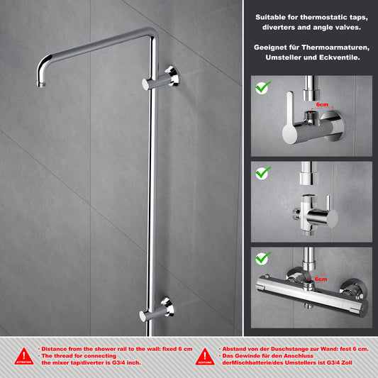 JOHO Edelstahl Duschstange mit Handbrausehalter und Variable Wandbefestigungen, Wandstange Regendusche Brausearm Brausestange Duschsäule mit fester Länge 92cm Chrom